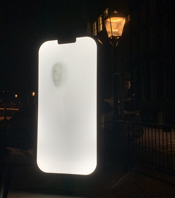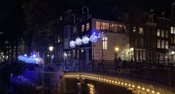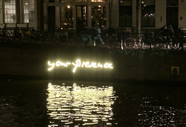 Hoe ironisch is het dan ook, dat wij kunstliefhebbers met z'n allen er met een mobieltje in de hand foto's van al deze kunstwerken aan de gracht vastleggen. De twaalfde editie van het Amsterdam Light Festival is zeker geslaagd. Aan de Amsterdamse grachten valt ruim 7 kilometer lang zeker wat te bekijken... Lees en kijk meer over enkele andere kunstwerken in het tweede deel van dit fotoverslag.