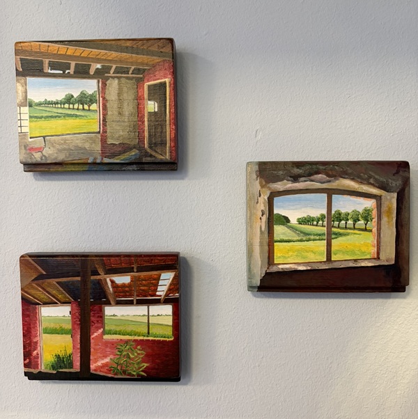 Maaike Nijlunsing studeerde in 2000 af aan de Academie Minerva in Groningen. Ze woont nu, 26 jaar later, op het platteland van de noordelijke provincie. Voor de expositie 'Dicht bij Huis' haalde ze haar inspiratie uit haar eigen leefomgeving en dan bij voorkeur verlaten plekken en vervallen gebouwen. Zo schilderde ze onder andere een herenboerderij op het Hogeland, een verlaten zwemparadijs op Ameland en een aluminiumgieterij tijdens de sloopwerkzaamheden in Farmsum.