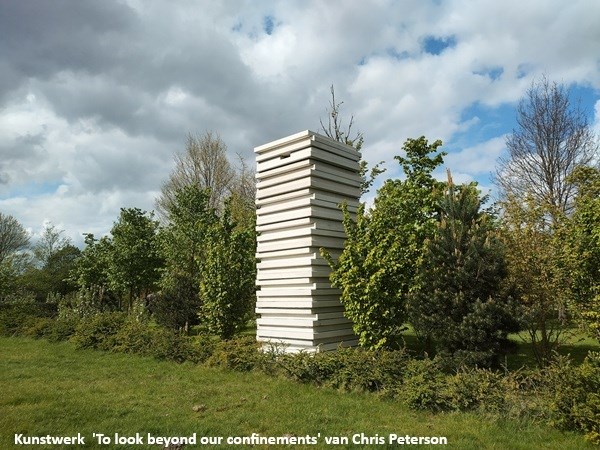 Het overkwam kunstenaar en BOK-lid Chris Peterson met zijn werk ‘To look beyond our confinements’. Een zes meter hoog beeld van betonplaten, zo’n 50 ton zwaar, met een waarde van 85.000 euro. In één klap was het verdwenen.