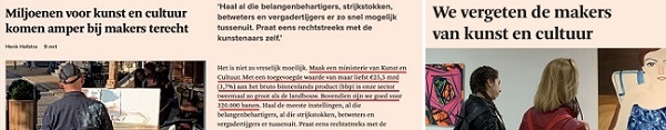 In de deze nieuwsbrief vind je ons commentaar op de voorgenomen btw-verhoging in het nieuwe regeerakkoord, het commentaar op atelierbeleid en twee nieuwe open calls. Ga naar de nieuwsbrief.
